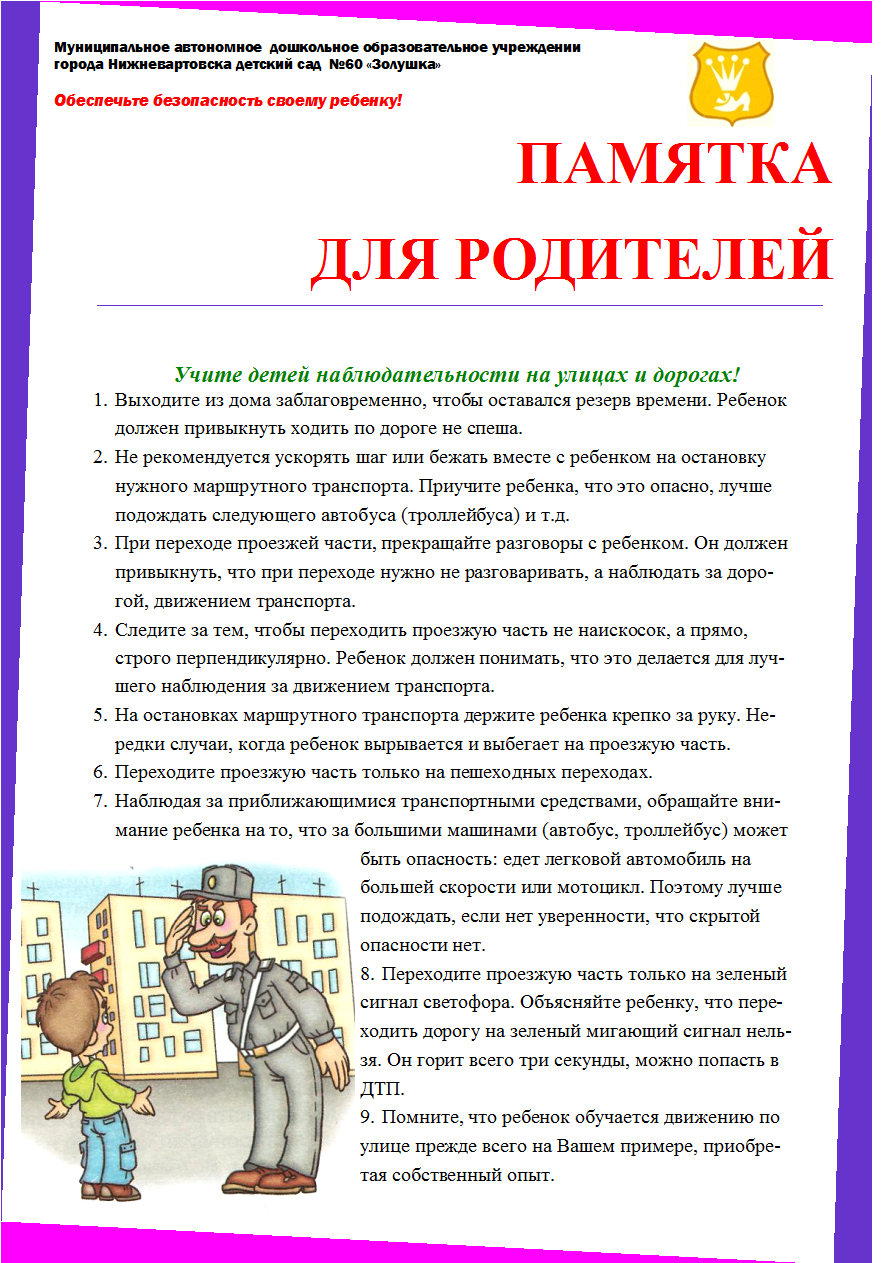 В помощь педагогам. ПАМЯТКИ ДЛЯ РОДИТЕЛЕЙ (чтенд ПДД)