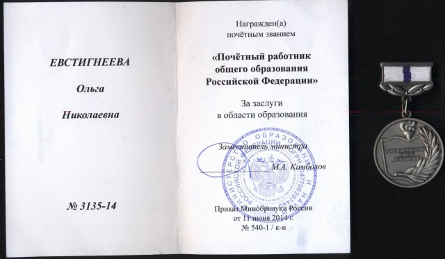 УДОСТОВЕРЕНИЕ "ПОЧЕТНЫЙ РАБОТНИК ОБЩЕГО ОБРАЗОВАНИЯ РОССИЙСКОЙ ФЕДЕРАЦИИ"