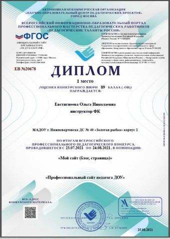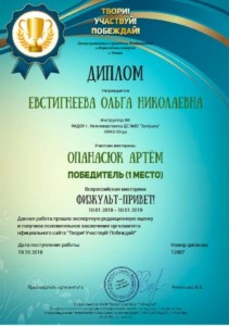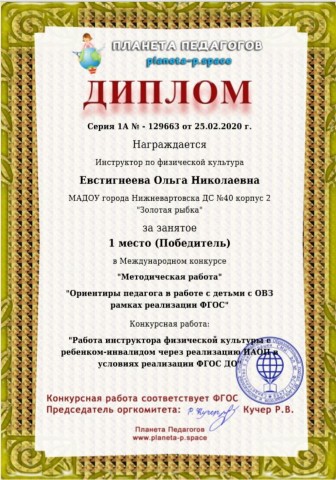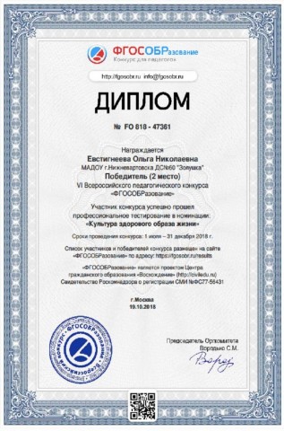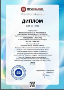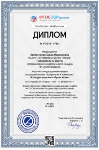 Диплом победителя VI Всероссийского педагогического конкурса "ФГОСОБРазование"