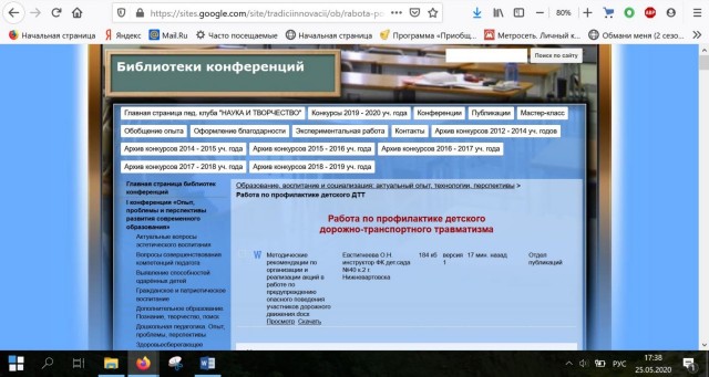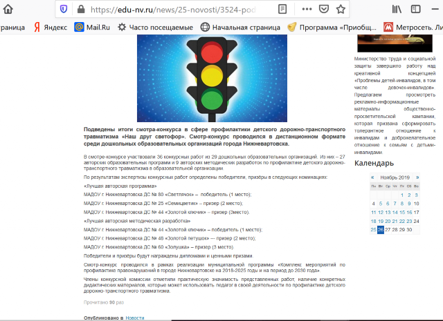 Скрин итогов смотра-конкурса в сфере профилактики детского дорожно-транспортного травматизма "Наш друг светофор", среди дошкольных образовательных организаций города Нижневартовска 2019г