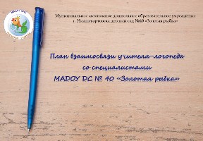 ПЛАН ВЗАИМОСВЯЗИ УЧИТЕЛЯ-ЛОГОПЕДА СО СПЕЦИАЛИСТАМИ