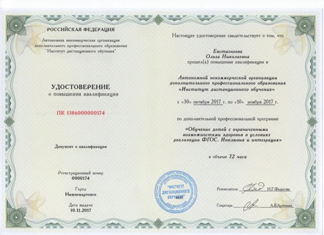 УДОСТОВЕРЕНИЕ О ПОВЫШЕНИИ КВАЛИФИКАЦИИ