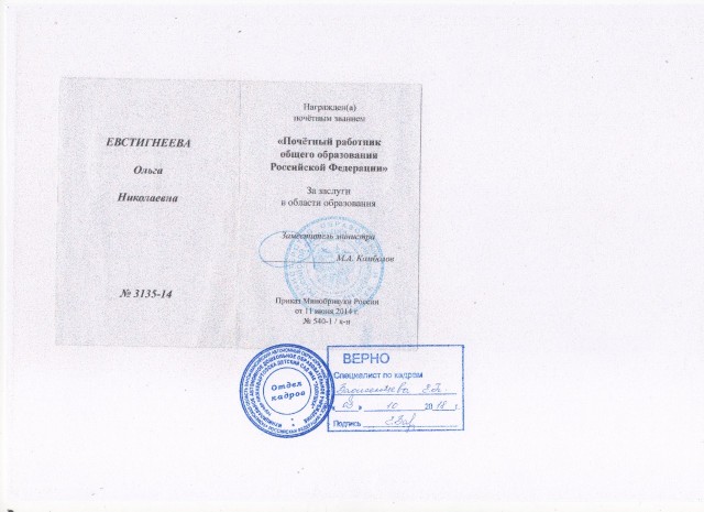 УДОСТОВЕРЕНИЕ "ПОЧЕТНЫЙ РАБОТНИК ОБЩЕГО ОБРАЗОВАНИЯ РОССИЙСКОЙ ФЕДЕРАЦИИ"